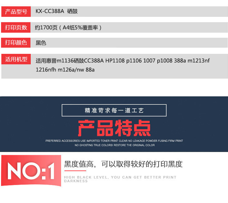 凱欣標準版 KX-CC388A硒鼓 適用惠普m1136硒鼓CC388A HP1108 p1106 1007 p1008 388a m1213nf 1216nfh墨盒m126a/nw打印機 全國統(tǒng)一價:126元