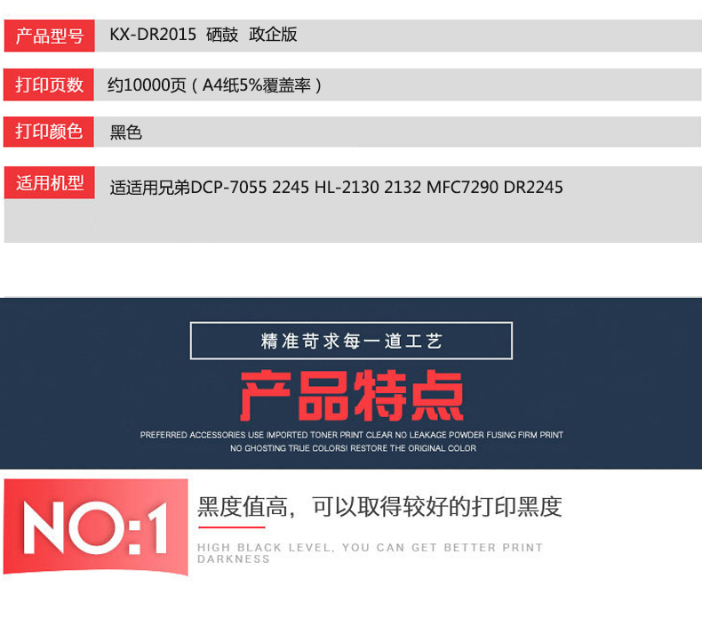 凱欣KX-DR2015 KX-2015硒鼓適用兄弟DCP-7055 2245 HL-2130 2132 MFC7290 DR2245 全國統(tǒng)一價(jià):189元